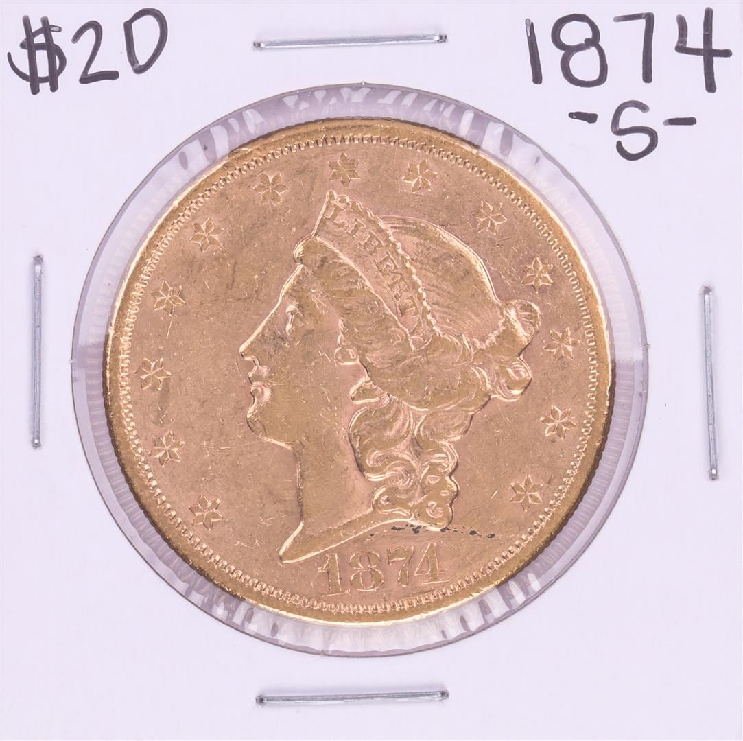 One 1874-S Type 2 $20 Liberty Head Double Eagle Coin.