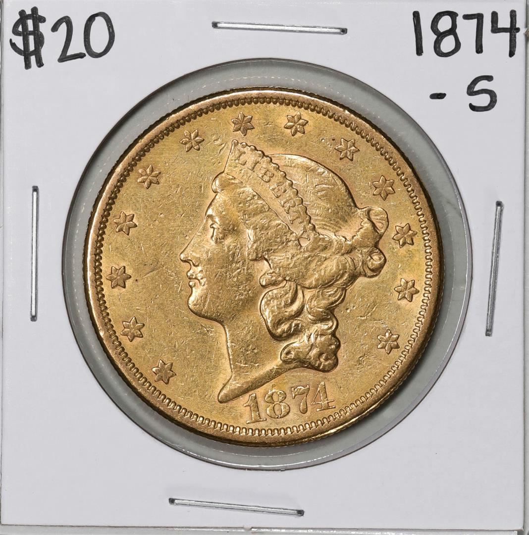One 1874-S Type 2 $20 Liberty Head Double Eagle Coin.