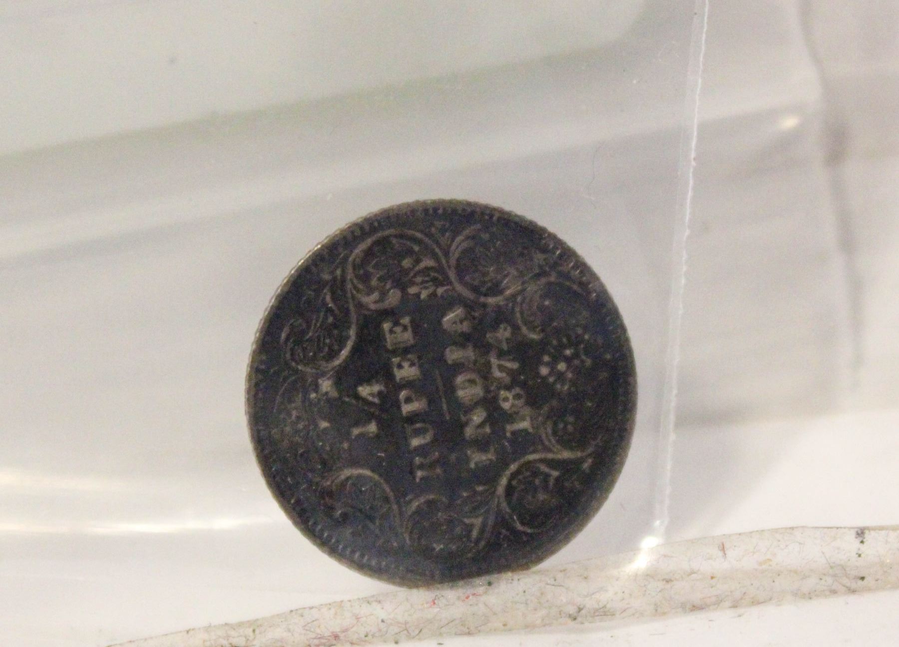 1874 SILVER BRITISH INDIA 1/4 RUPEE COIN