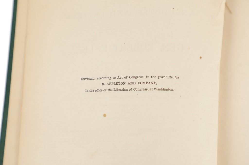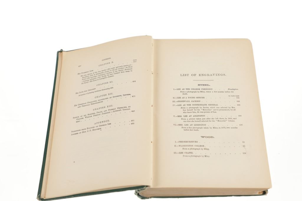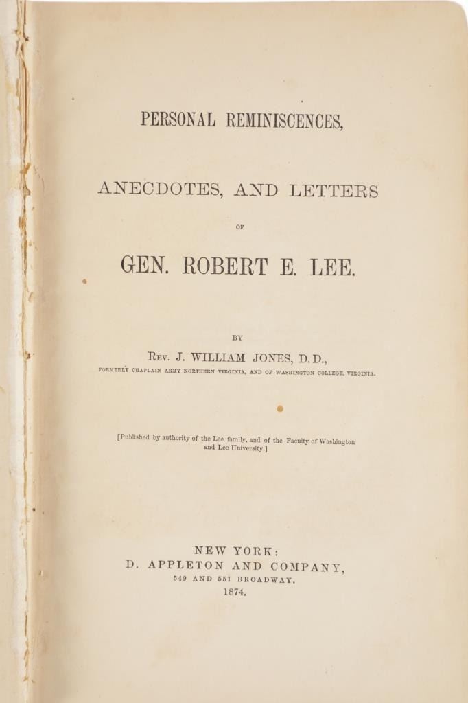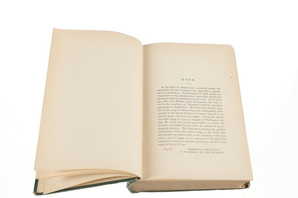 For your consideration is the Rare First Edition of, "Personal Reminiscences of Gen. Robert E. Lee", 1874, by Rev. J. William Jones, D. D., formerly chaplain Army Northern Virginia, and of Washington College, Virginia (Washington & Lee University, Lexington, Virginia). Robert E. Lee lived only five years after the end of the War Between the States. Dedicated to his work in directing the education of young men at Washington College in Lexington, Virginia, where he served as president, he did not have time or opportunity to write his memoirs. One of his chaplains with whom he was quite close in Christian fellowship - his familial friend, J. William Jones, set about to prepare a near approximation of Lee’s memoirs, which was endorsed both by the Lee family and Washington (and Lee) College. Lee’s story is told topically as Jones looks at various aspects of his life and character. Included are an abundance of professional and personal correspondence by Lee that give the reader insight into Lee, the man, soldier, husband, and father better than any narrative describing him. General Lee has come to be known as one of the most beloved generals in history, but perhaps his greatest contribution to the United States was his effort to reunite the country following the American Civil War. In the opinions of his contemporaries and historians, Lee played a crucial role in restoring peace following the war. This green clothbound gold gilt hardcover is in amazingly good condition overall, the gold gilt is bright and clean. Scuffing noted to stamped illustrated cover edges, binding loose but attached. Intact pages exhibit age tanning and light foxing, no other obvious marring noted. Measures 6"W x 9.25"L x 1.5"D