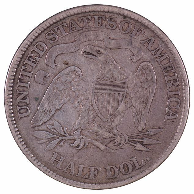 One 1874 Seated Liberty Half Dollar Coin.