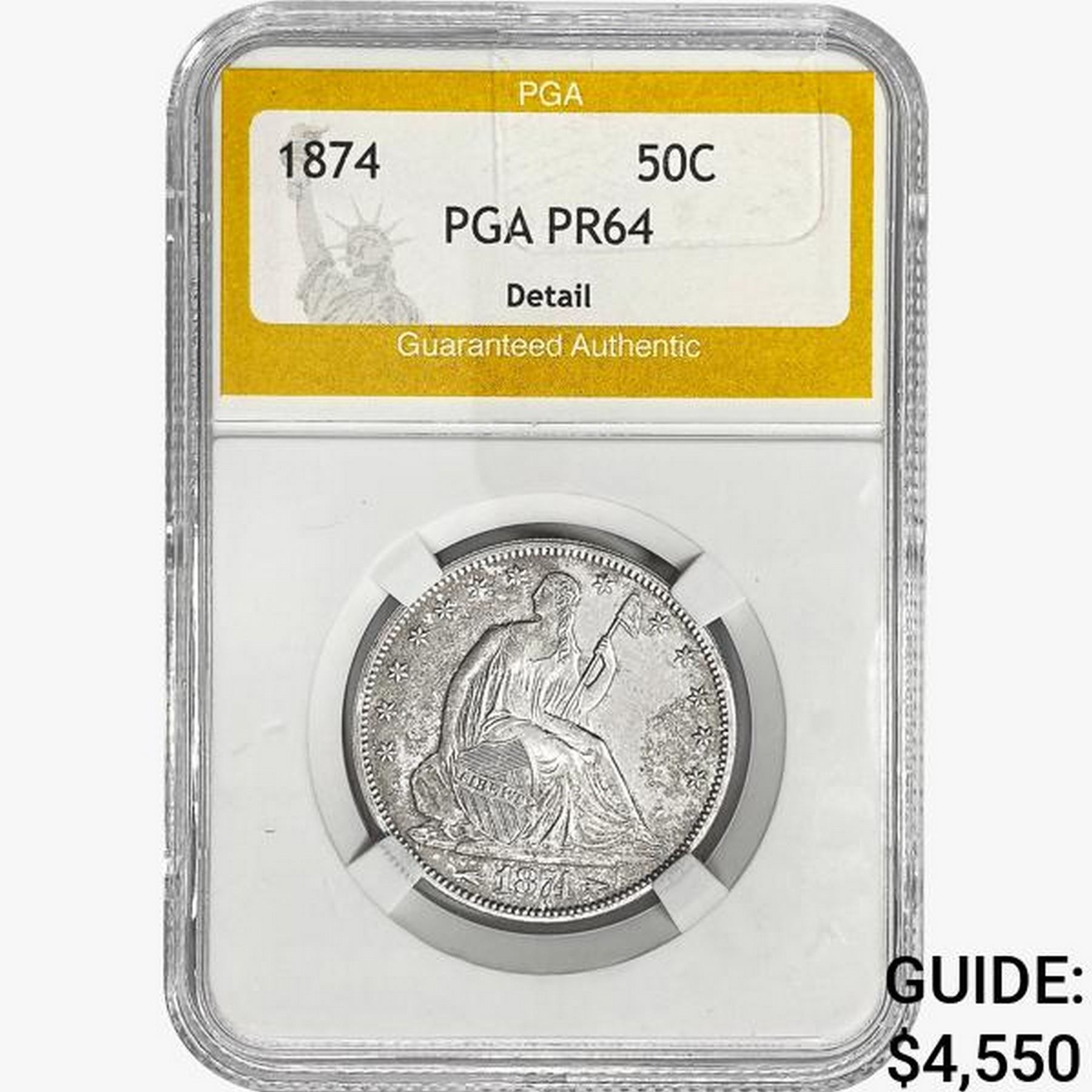 1874 Seated Liberty Half Dollar PGA PR64 Detail