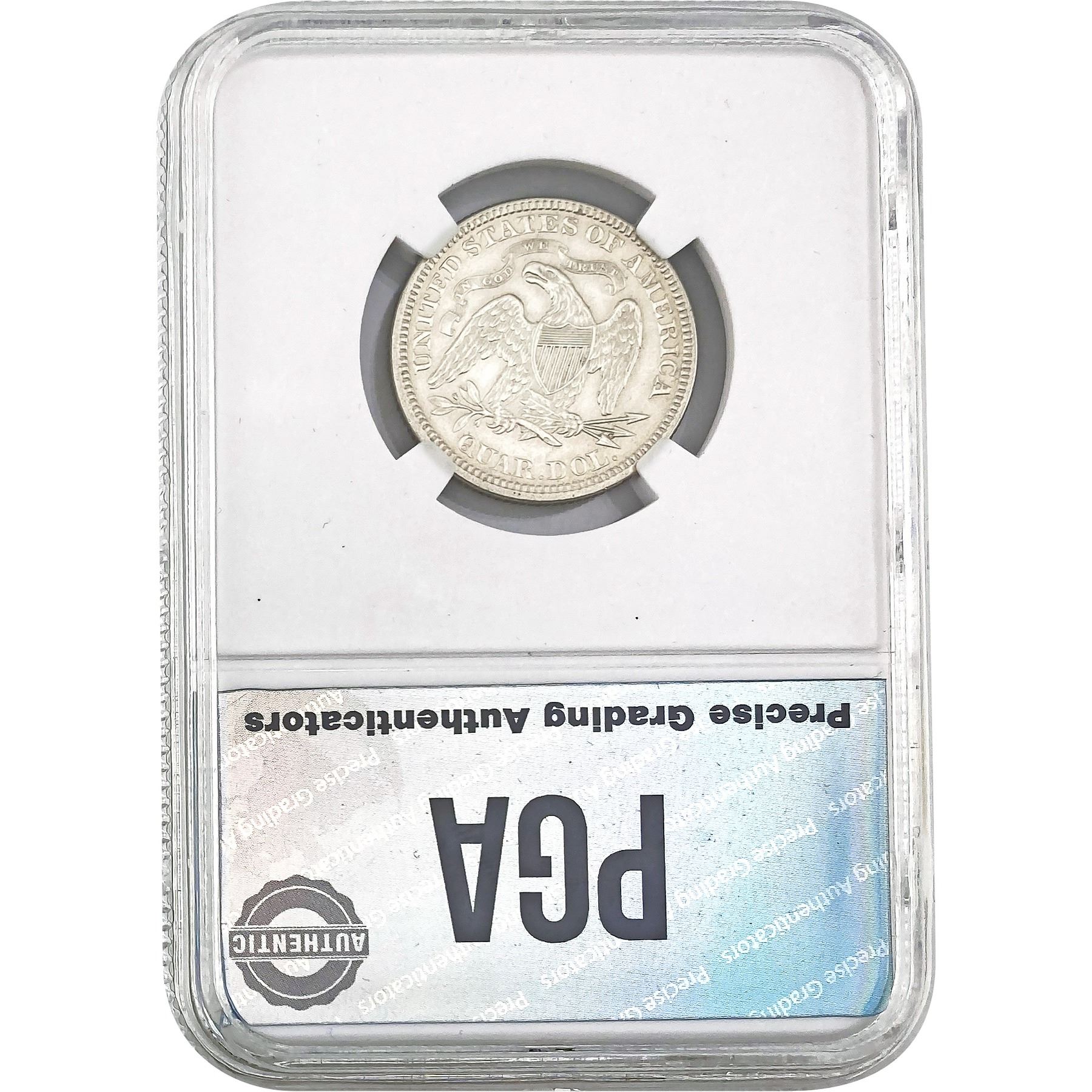 COINS AND CURRENCY LISTED IN GSA’S CATALOG AS GRADED AND ENCAPSULATED BY PCGS, NGC, ANACS, ICG, PCGS CURRENCY, PMG, PCGS BANKNOTE GRADING, CMC OR ANY OTHER THIRD-PARTY GRADING SERVICE ARE LIKEWISE SOLD “AS-IS” EXCEPT AS EXPRESSLY SET FORTH HEREIN. ALL THIRD-PARTY GRADING SERVICE GUARANTEES, INCLUDING AUTHENTICITY, ARE THE SOLE RESPONSIBILITY OF THE THIRD-PARTY GRADING SERVICE AND NOT WARRANTIES OR GUARANTEES OF GSA. BIDDERS SHOULD CONTACT THESE THIRD-PARTY GRADING SERVICES DIRECTLY WITH RESPECT TO ANY CLAIMS OR QUESTIONS THEY MAY HAVE CONCERNING THEIR GUARANTEES AND WARRANTIES. BIDDERS ACKNOWLEDGE AND AGREE THAT AUCTIONEER IS NOT BOUND BY OR LIABLE FOR ANY OPINION OR CERTIFICATION BY ANY THIRD-PARTY GRADING SERVICE. REMOVAL OF A PRODUCT FROM ITS PROTECTIVE CASING OR HOLDER OR ALTERATION OF ANY COIN HOLDER WAIVES ALL RIGHTS CONCERNING THE PRODUCT CONTAINED THEREIN.