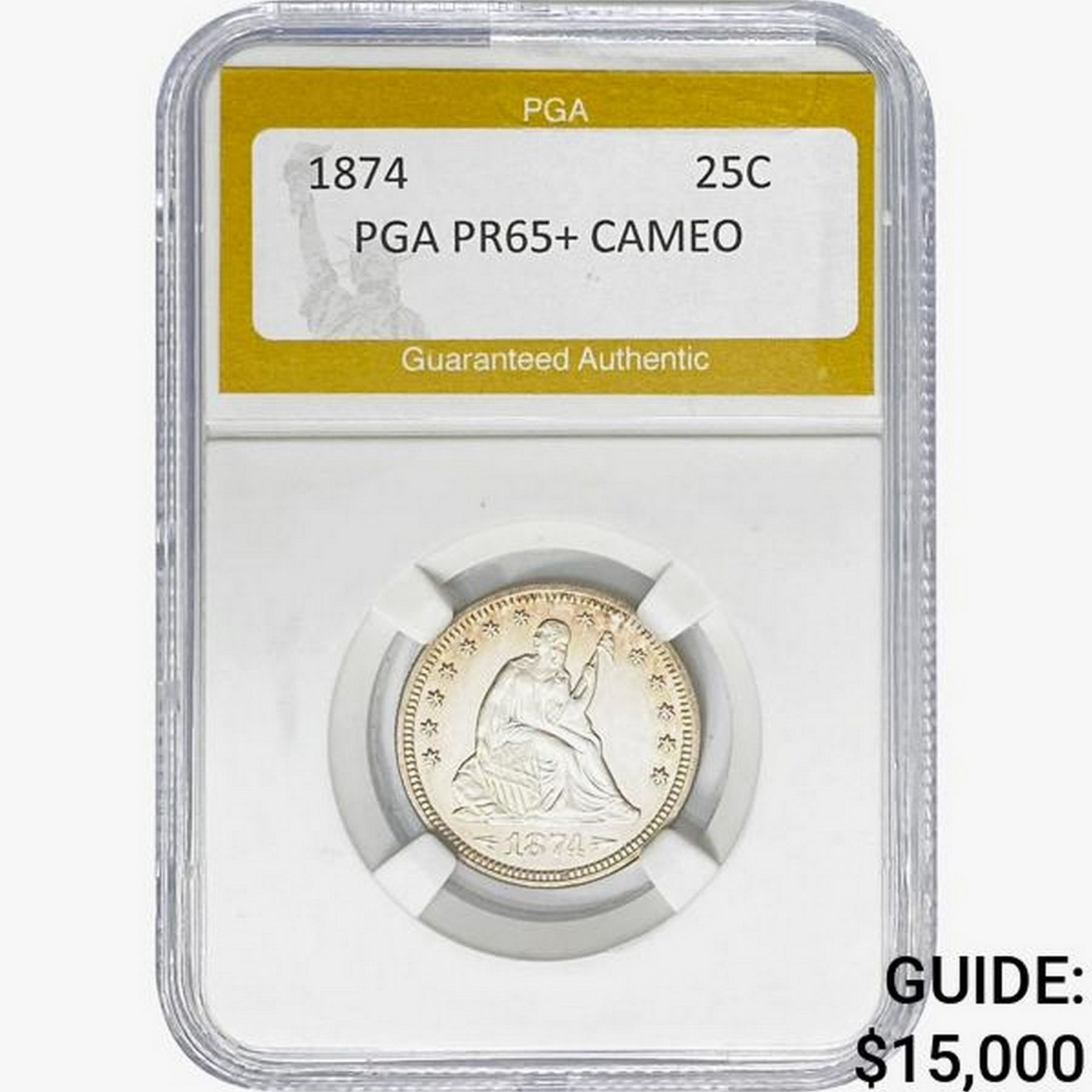 1874 Seated Liberty Quarter PGA PR65+ CAMEO/PROOF