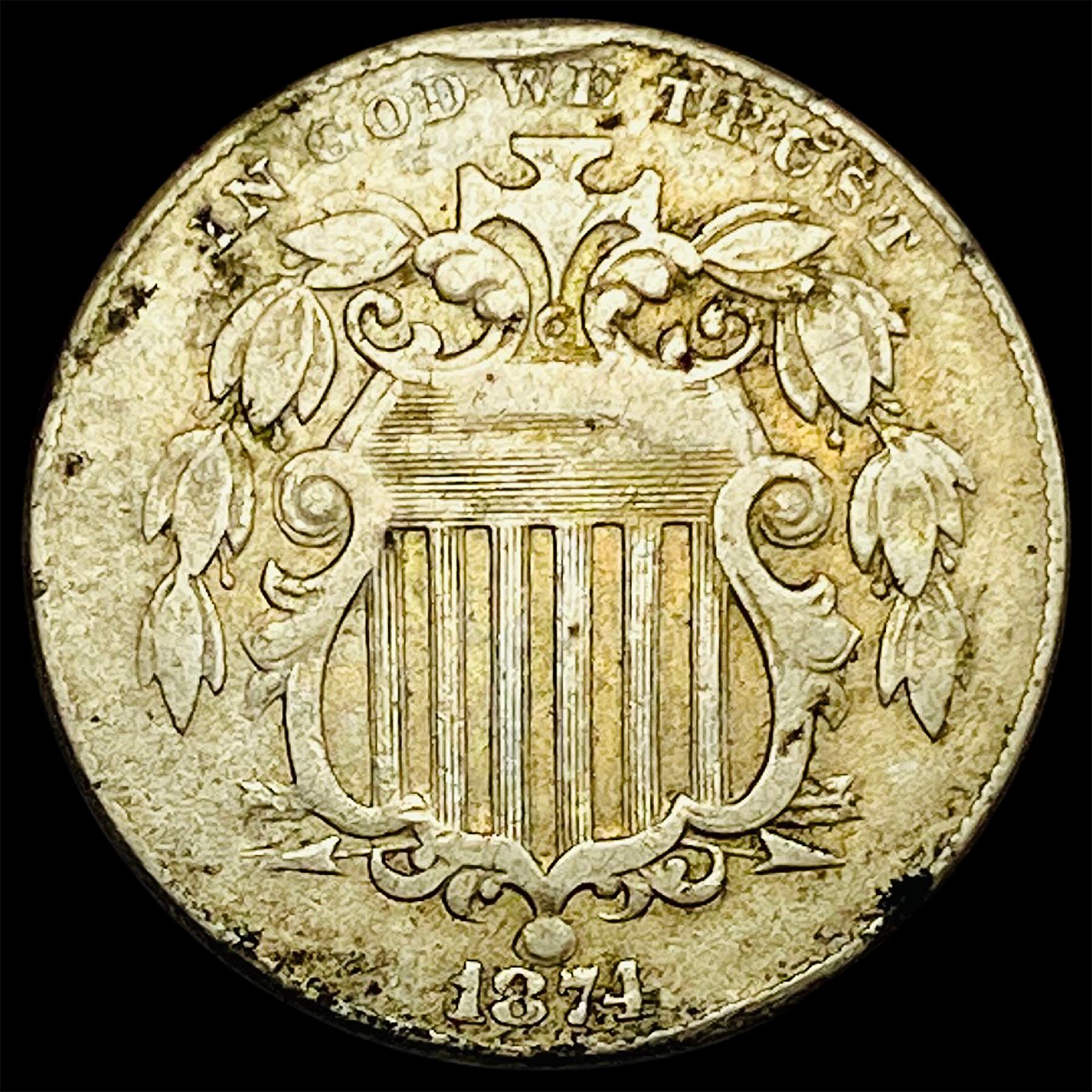 1874 Shield Nickel NEARLY UNCIRCULATED