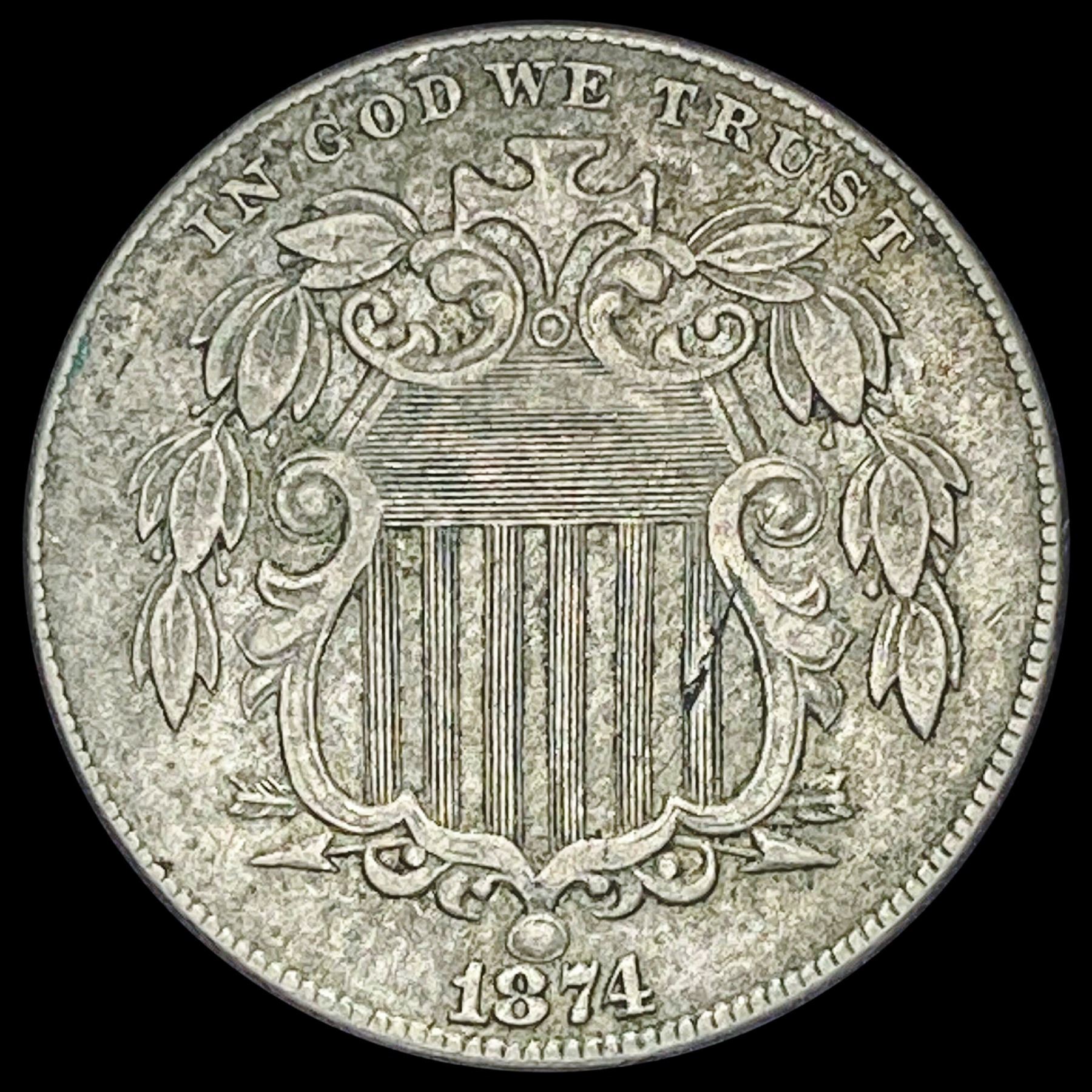 1874 Shield Nickel NEARLY UNCIRCULATED