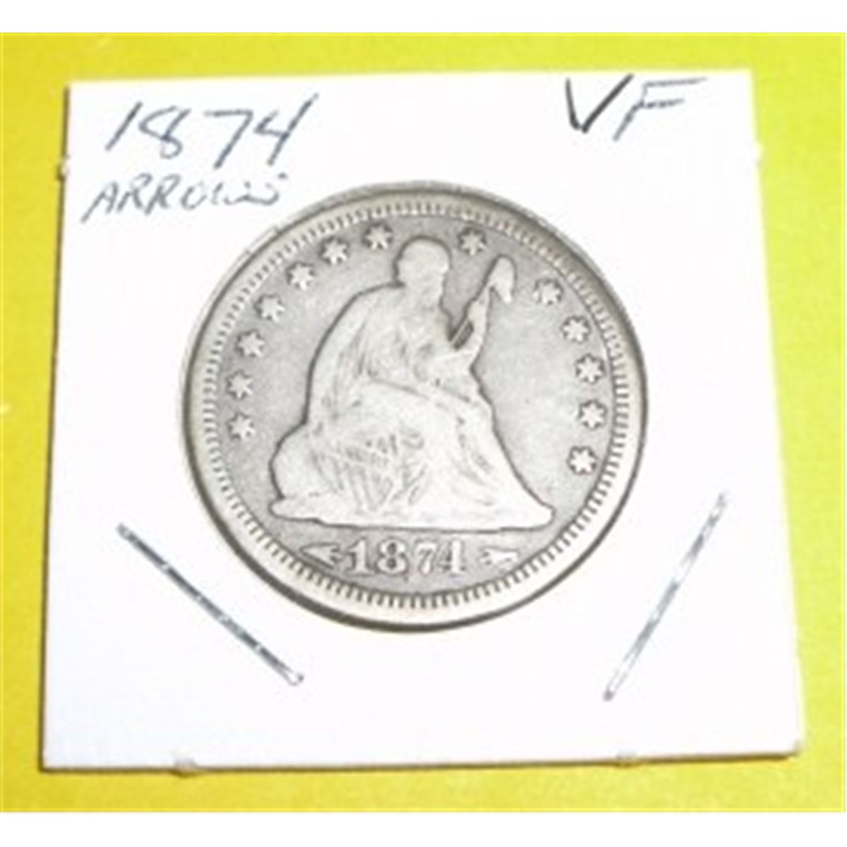 1874 Silver Quarter Dollar Seated Liberty Variety 5 *RARE VERY FINE GRADE ARROWS AT DATE*!! ***Coin & Currency Grades, Conditions & Values are not Safe Deposit Coins Responsibilty. Grades, Conditions & Values are determined by Consigner(s) & Buyers***