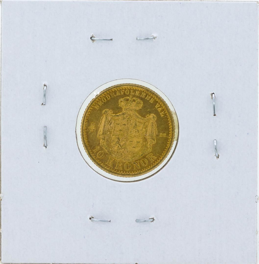 One 1874 Sweden 10 Kronor Gold Coin.
