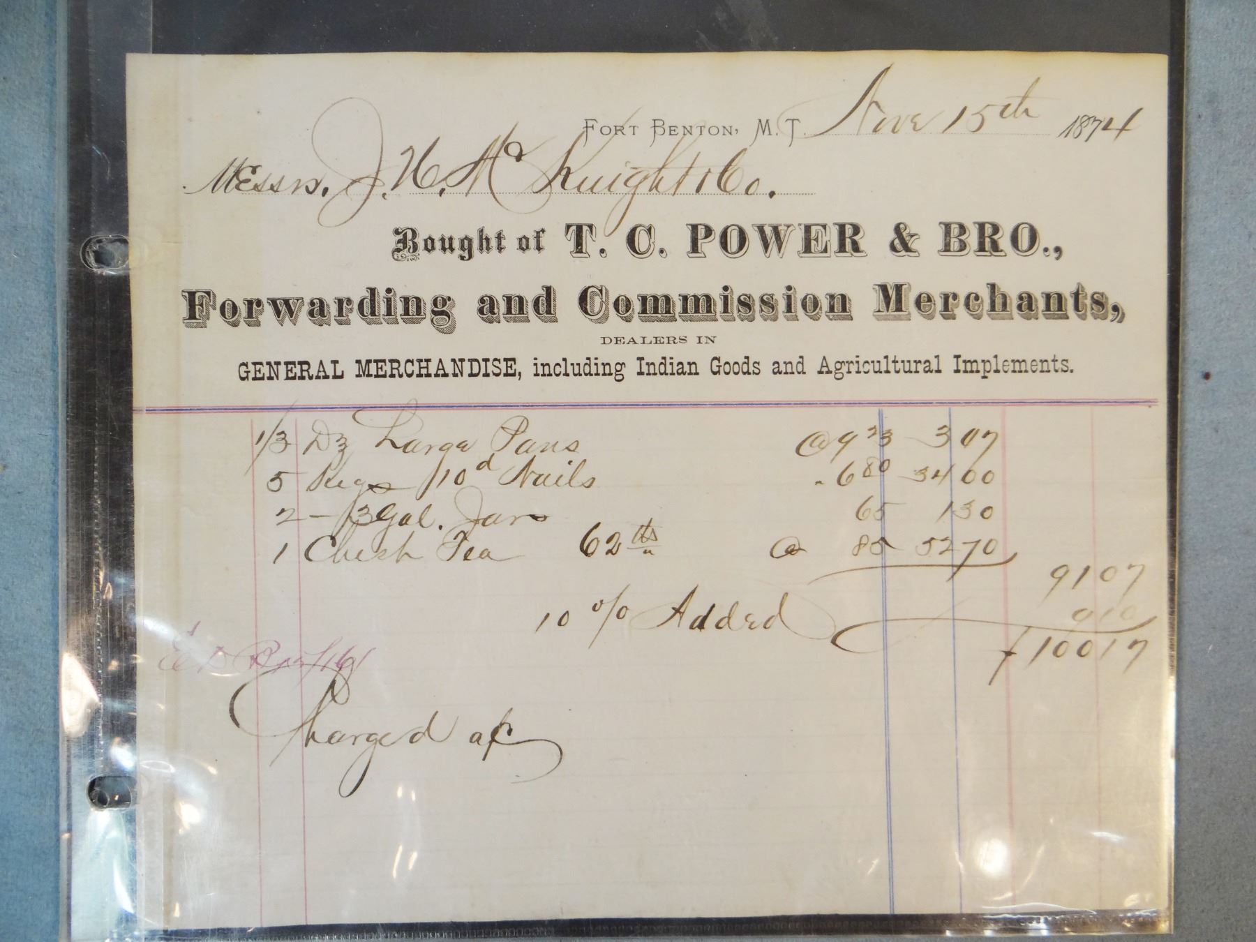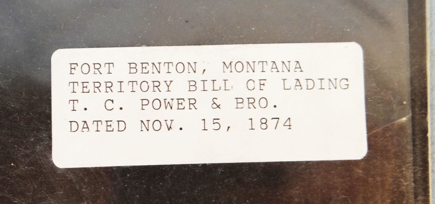 1874 TC Power Co. document, Fort Benton, Montana Territory