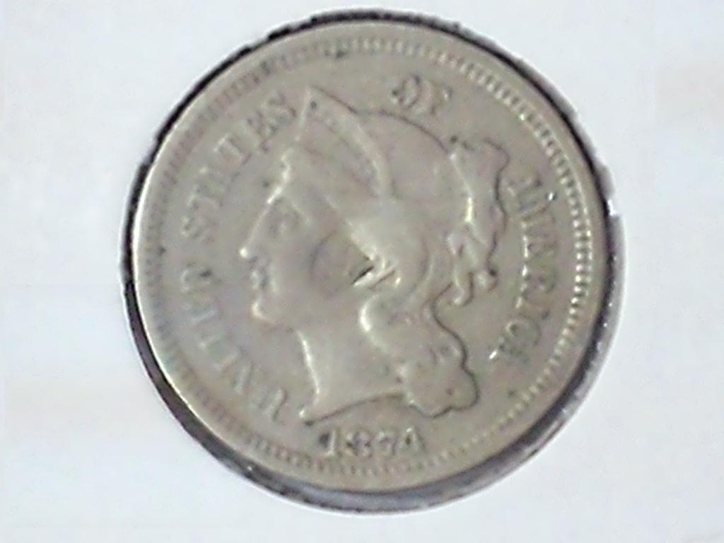 1874 THREE CENT PIECE (NICKEL) DIVIT MARK