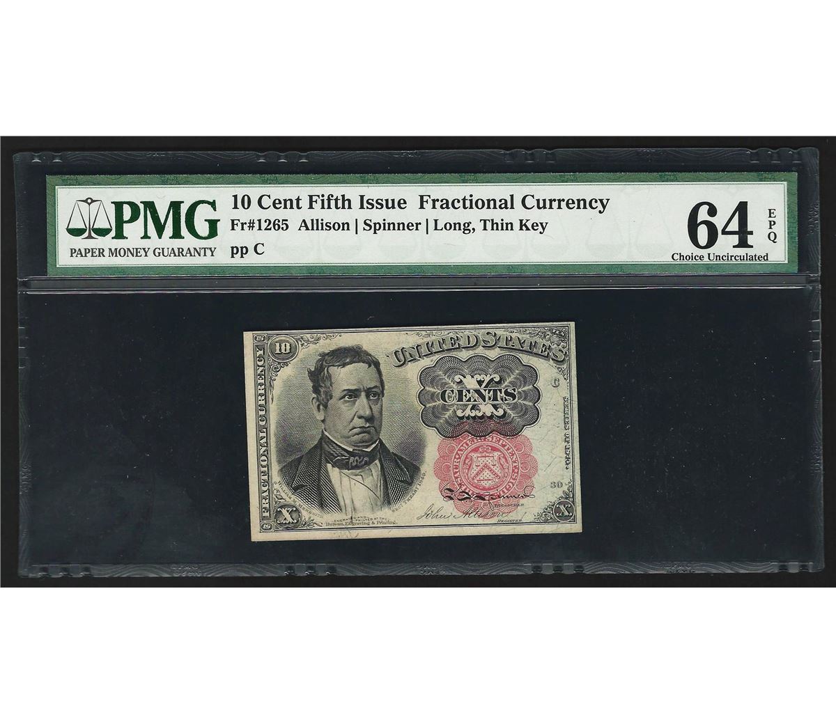 One 1874 Ten Cent Fifth Issue Fractional Currency Note PMG CU64EPQ. PMG Certified.