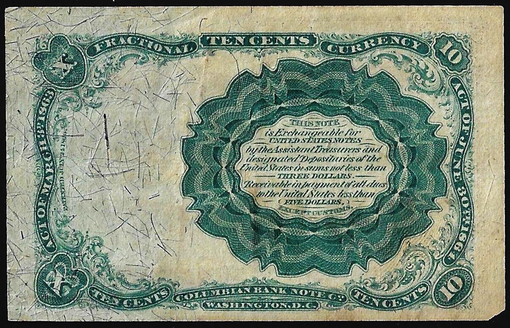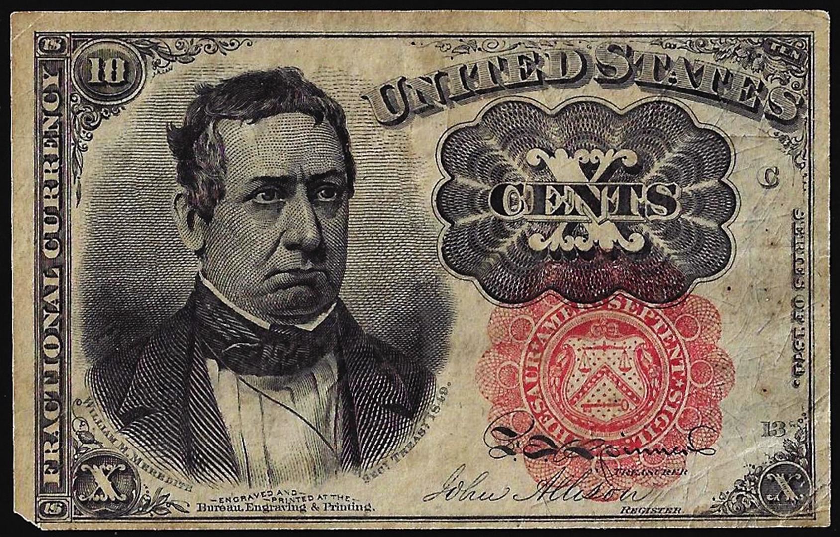 One 1874 Ten Cent Fifth Issue Fractional Currency Note.