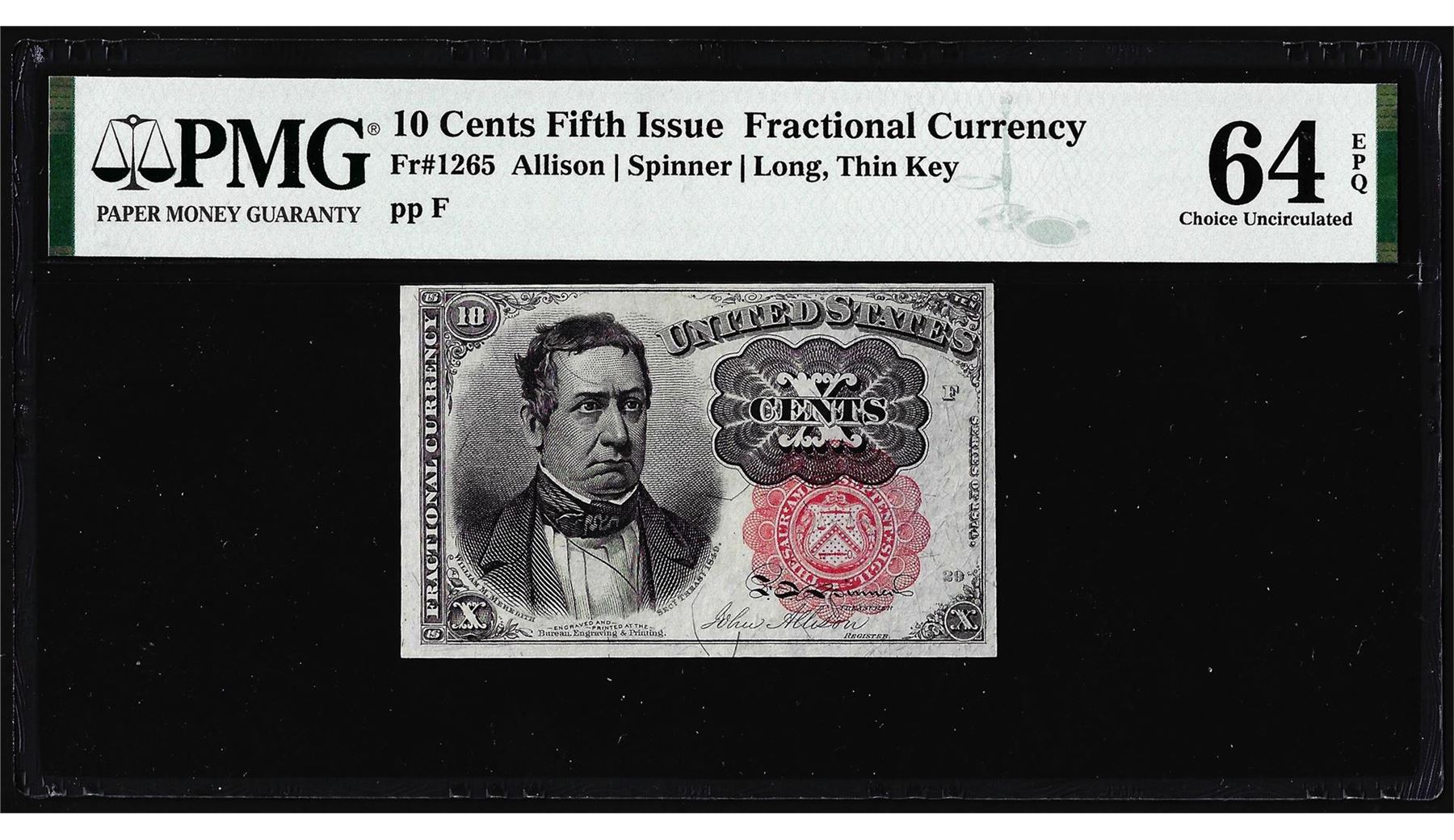 One 1874 Ten Cent Fifth Issue Fractional Note Fr.1265 PMG Choice Uncirculated 64EPQ. PMG Certified.