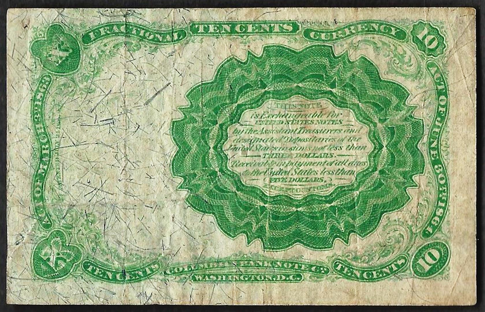 One 1874 Ten Cent Fifth Issue Fractional Notes.