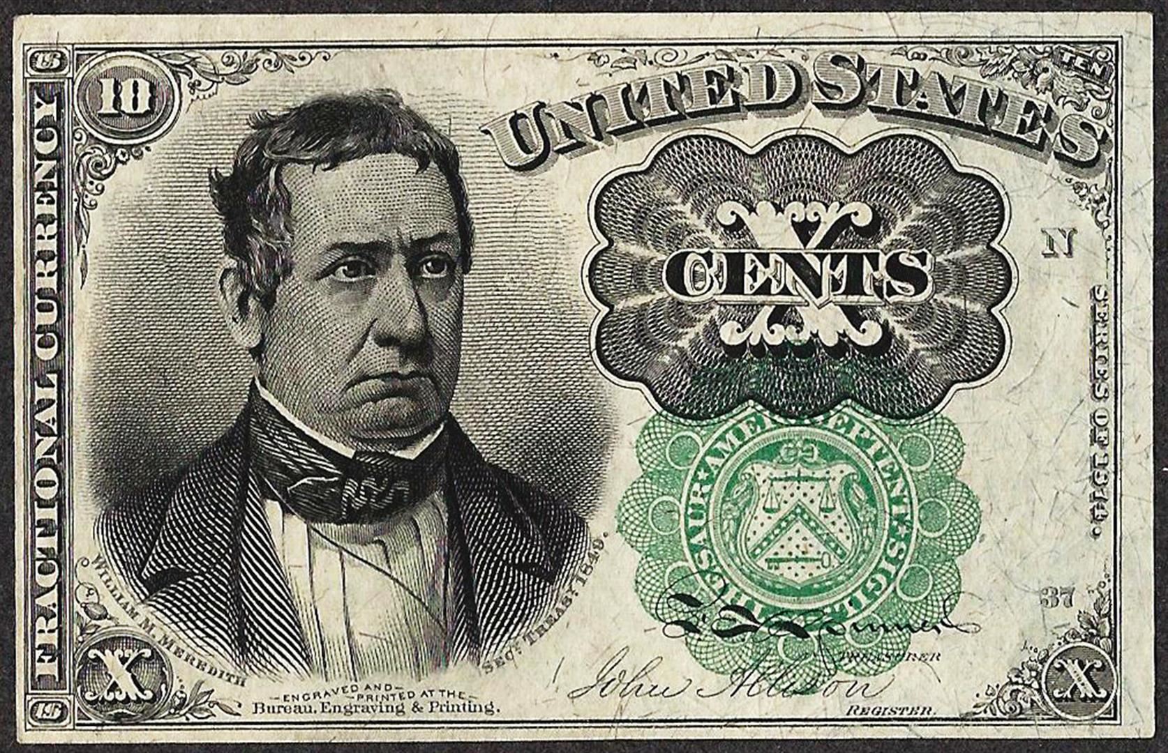 One 1874 Ten Cents Fifth Issue Fractional Currency Note.
