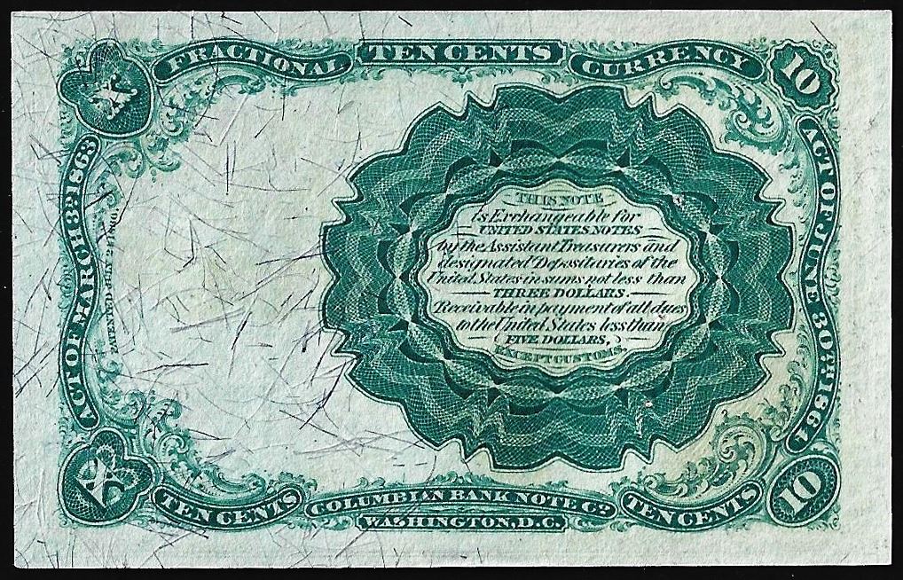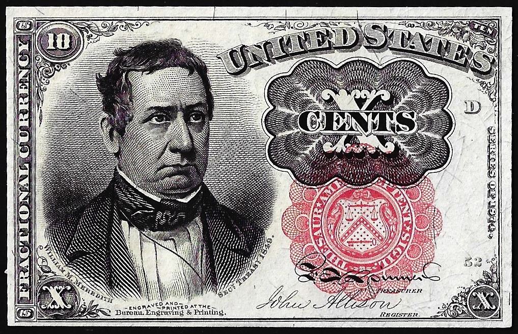 One 1874 Ten Cents Fifth Issue Fractional Currency Note.