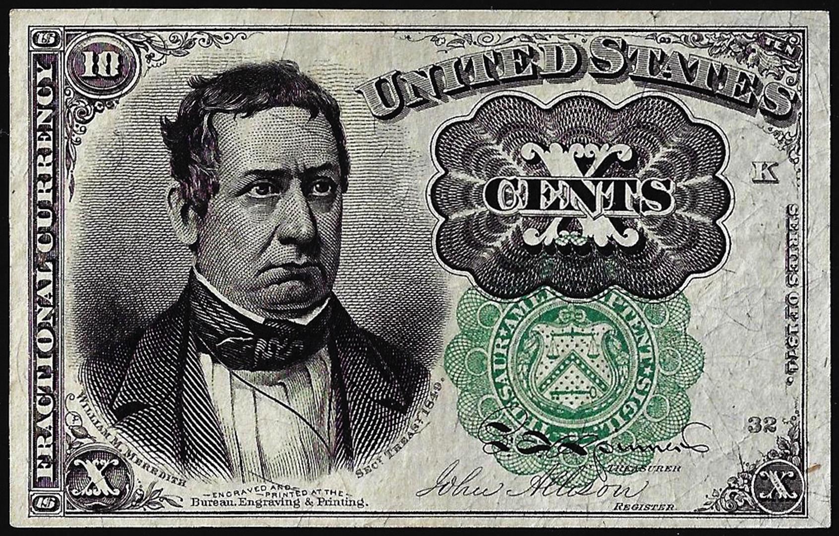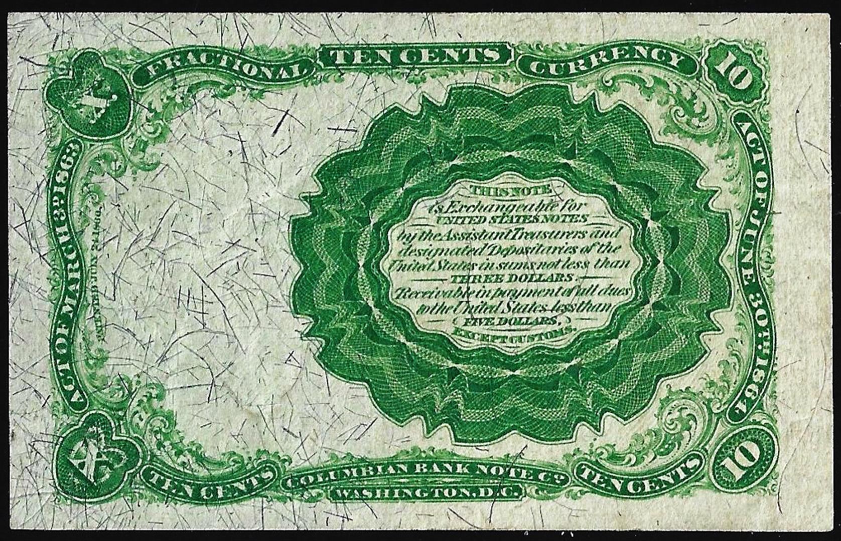 One 1874 Ten Cents Fifth Issue Fractional Currency Note.
