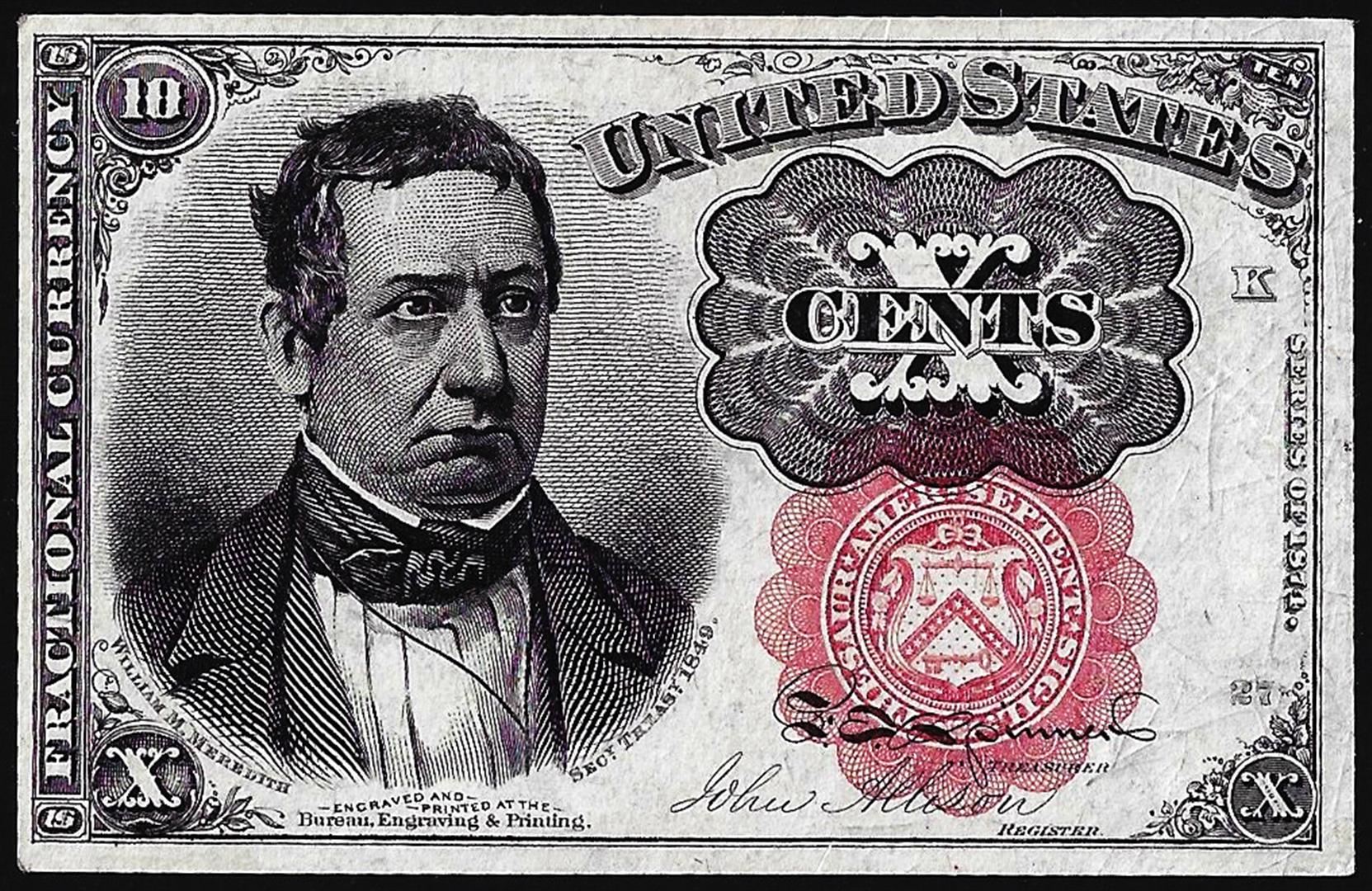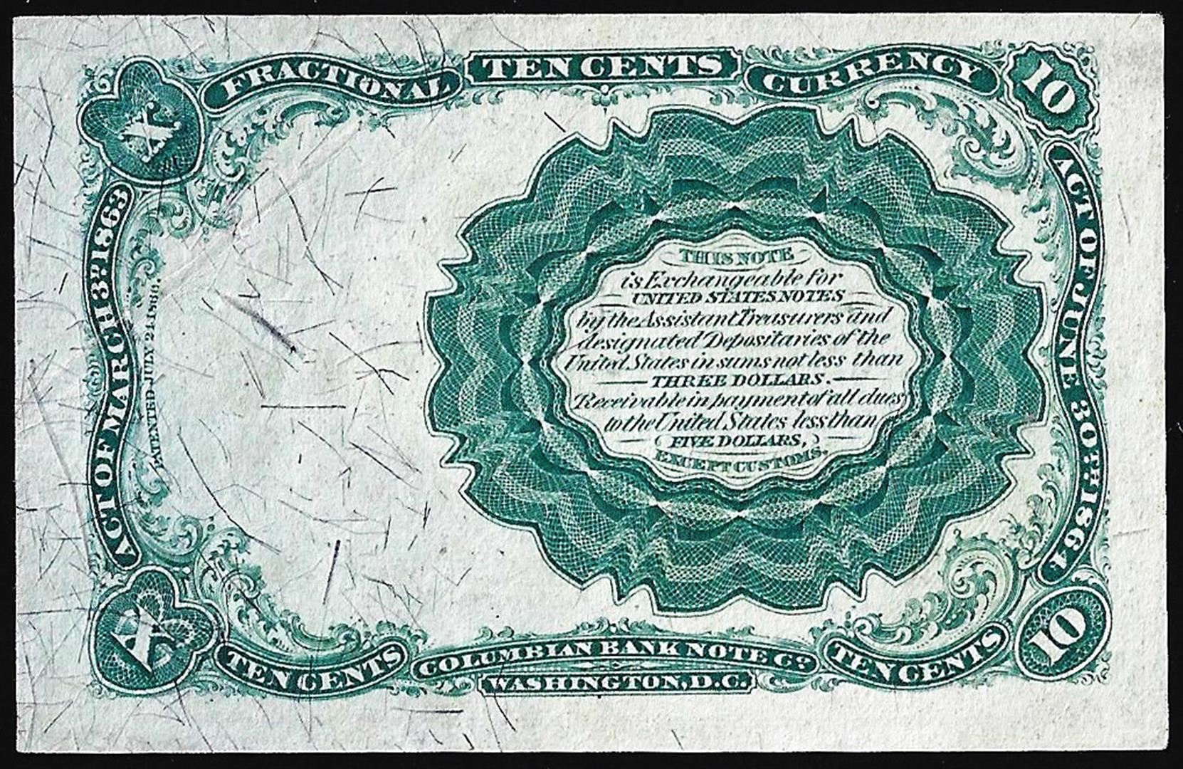 One 1874 Ten Cents Fifth Issue Fractional Currency Note.