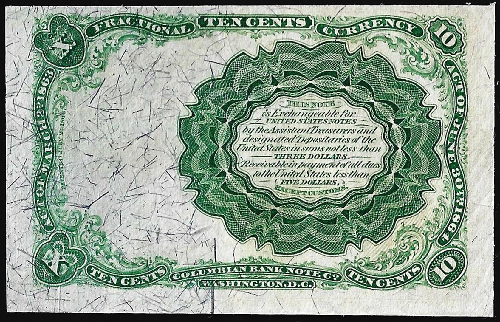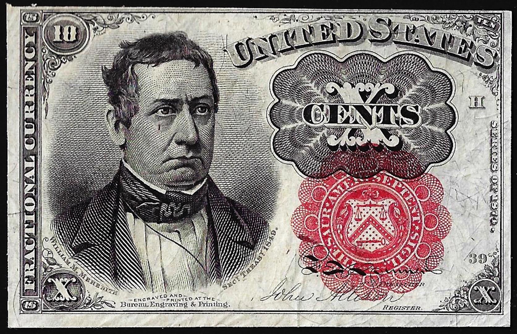 One 1874 Ten Cents Fifth Issue Fractional Currency Note.