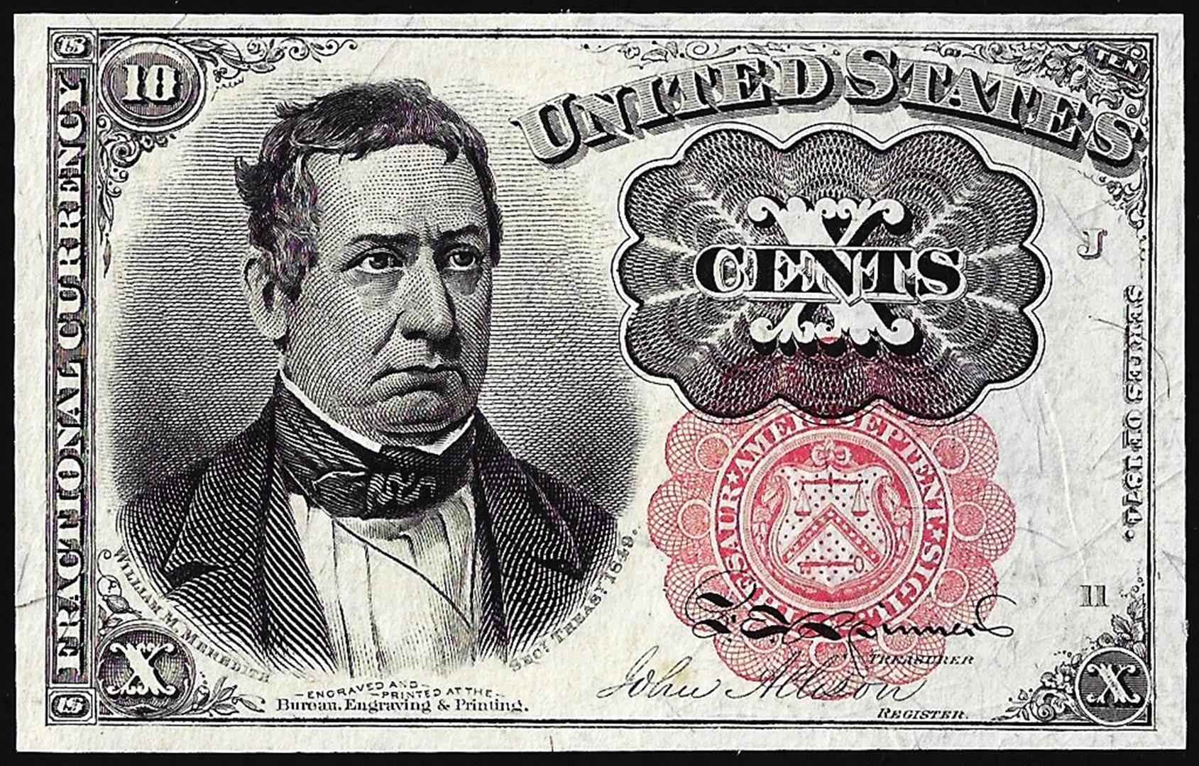 One 1874 Ten Cents Fifth Issue Fractional Currency Note.