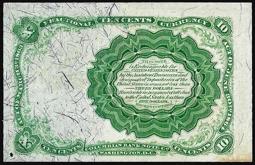 One 1874 Ten Cents Fifth Issue Fractional Currency Note.