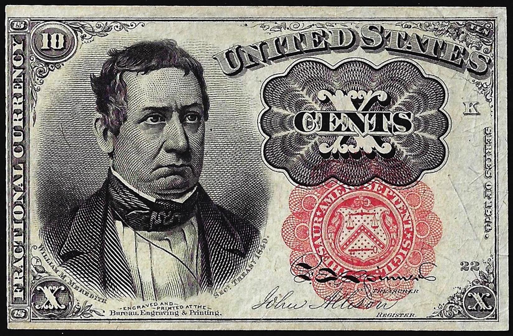 One 1874 Ten Cents Fifth Issue Fractional Currency Note .