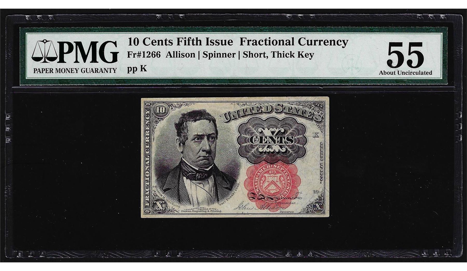 One 1874 Ten Cents Fifth Issue Fractional Note Fr. 1266 PMG About Uncirculated 55. PMG Certified.