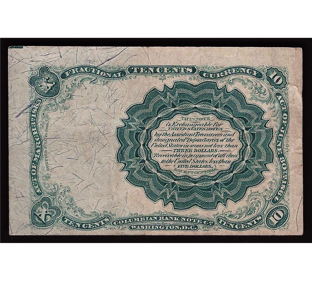One 1874 Ten Cents Fifth Issue Fractional Note.