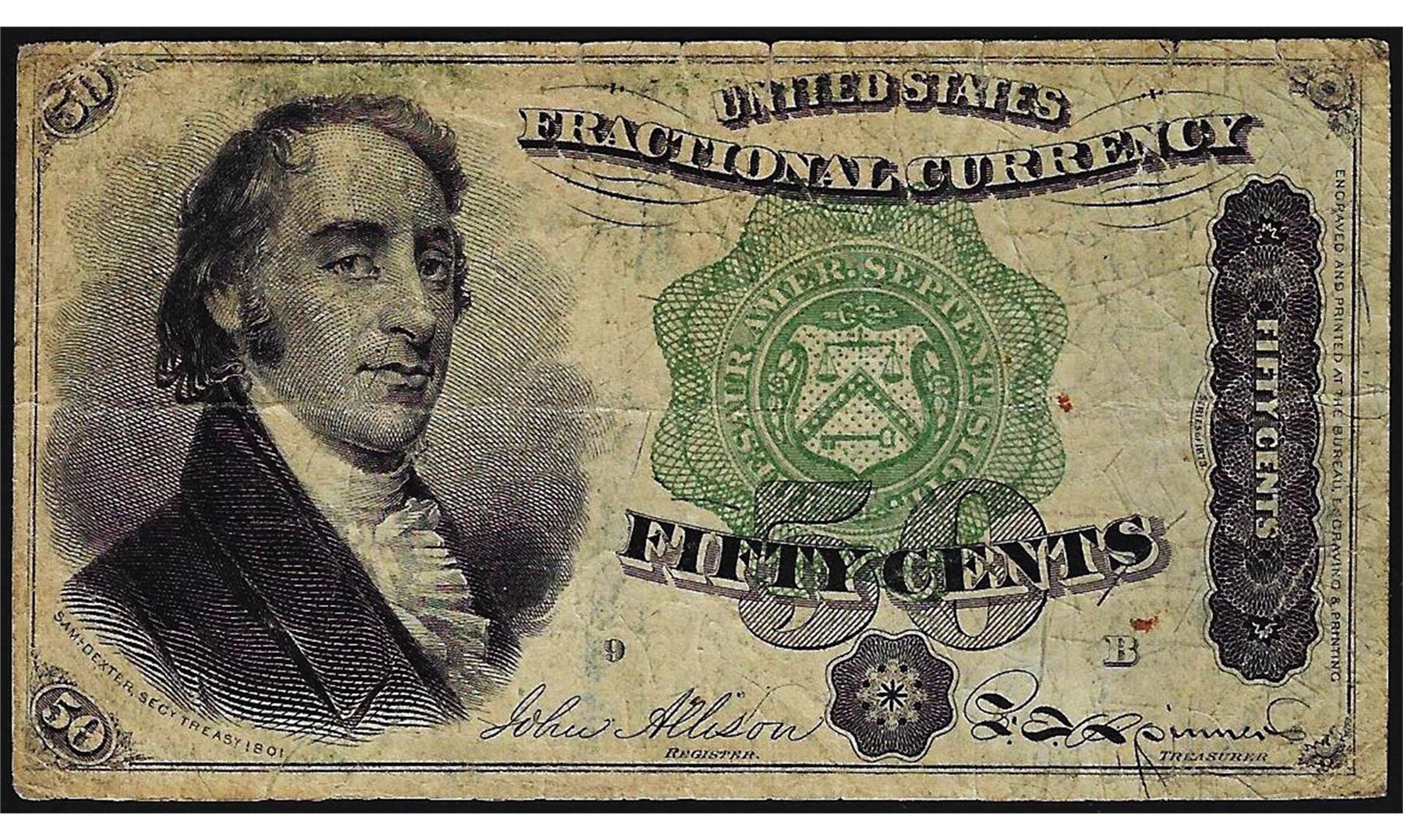 One 1874 Ten Cents Fifth Issue Fractional Note.