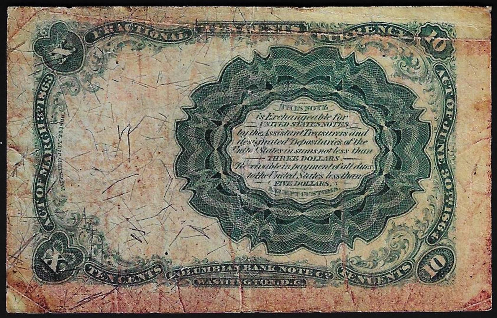 One 1874 Ten Cents Fifth Issue Fractional Note.