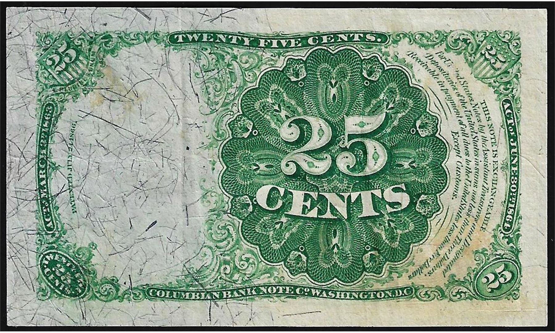 One 1874 Twenty-Five Cent 5th Issue Fractional Note.