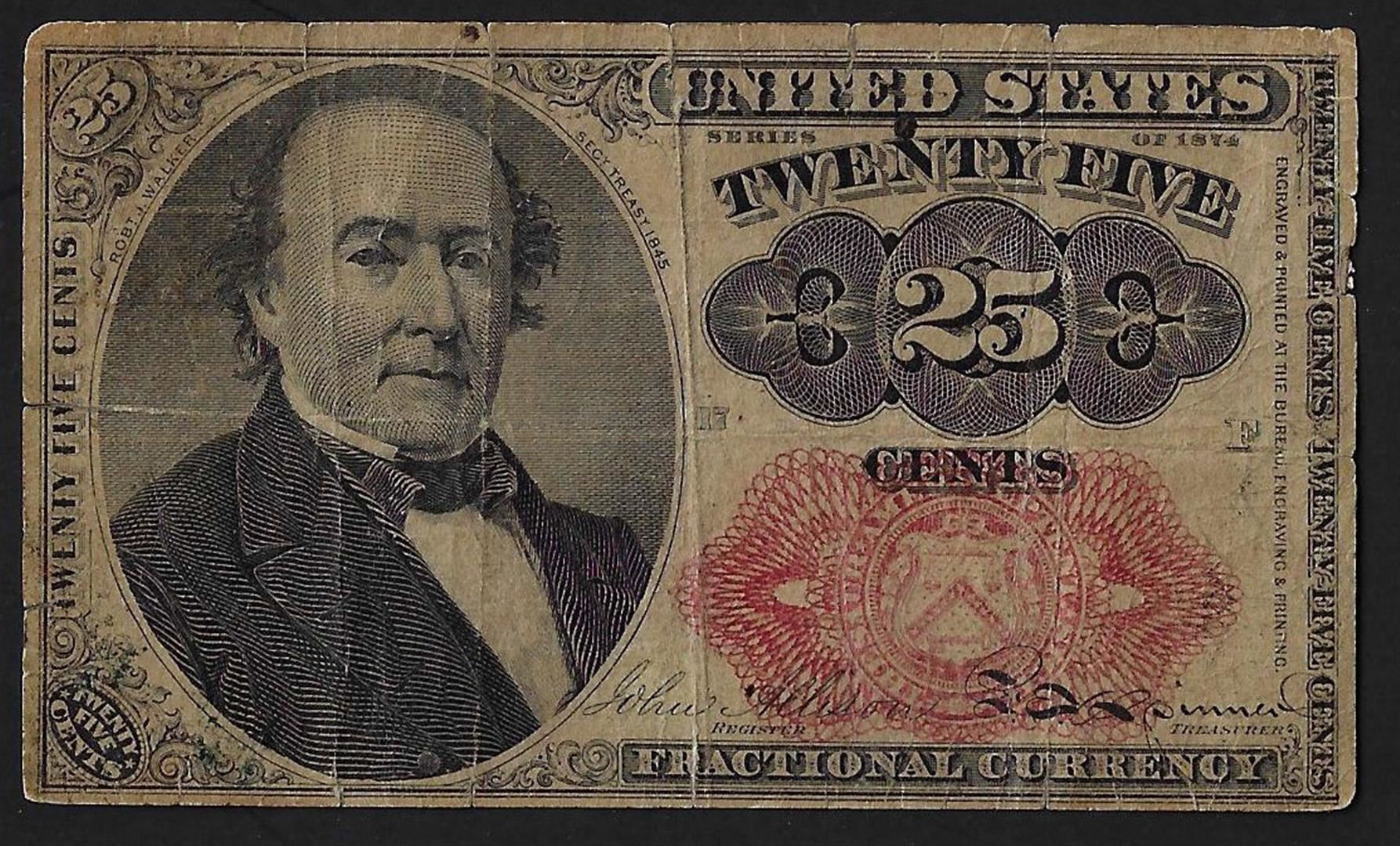 One 1874 Twenty-Five Cent Fifth Issue Fractional Note.