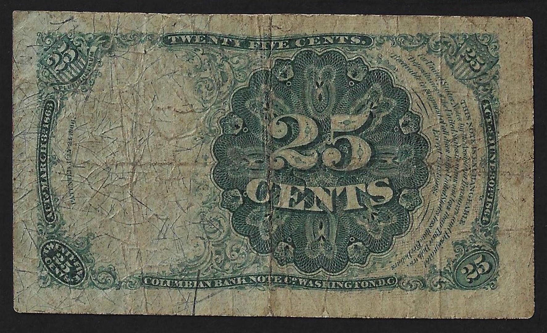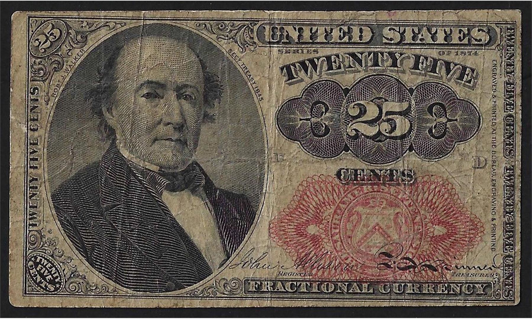 One 1874 Twenty-Five Cent Fifth Issue Fractional Note.