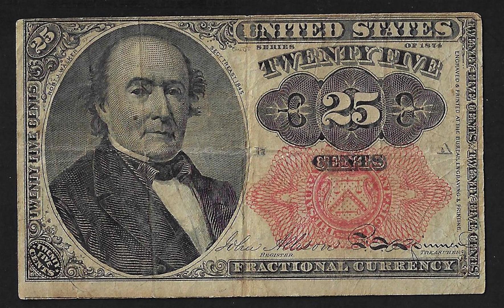 One 1874 Twenty-Five Cent Fifth Issue Fractional Note.