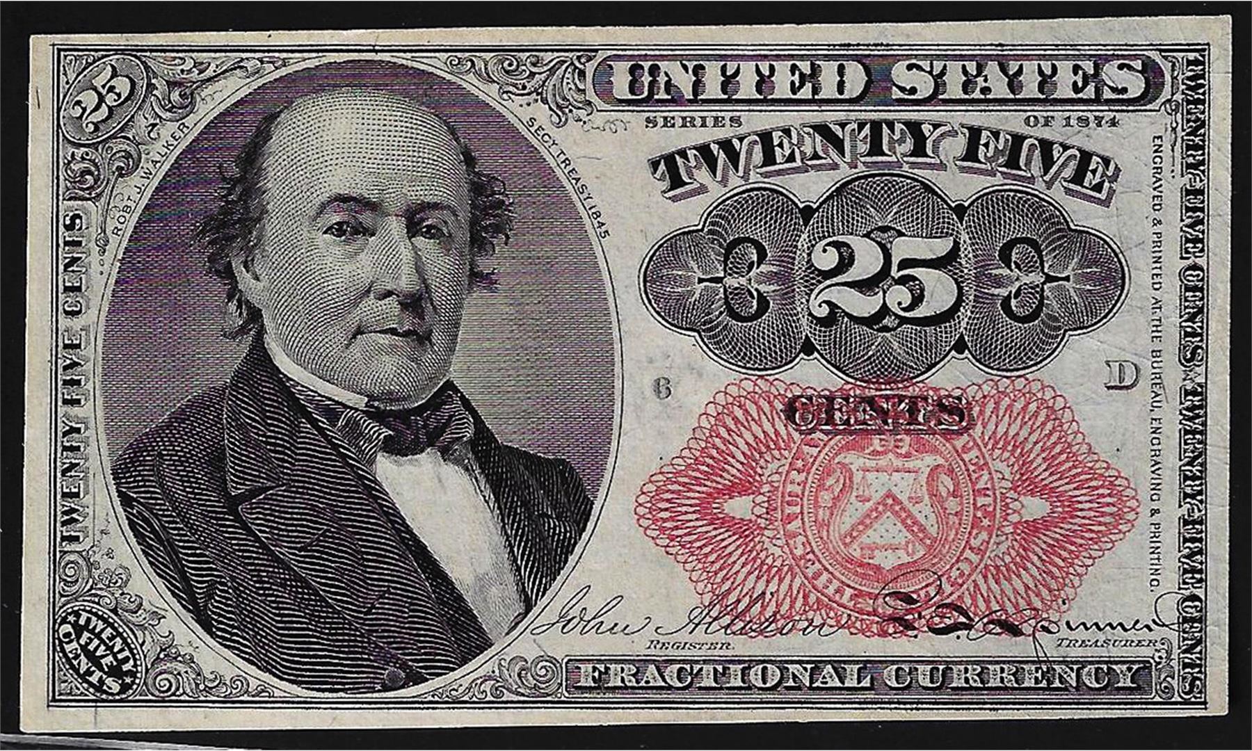 One 1874 Twenty-Five Cents 5th Issue Fractional Note.