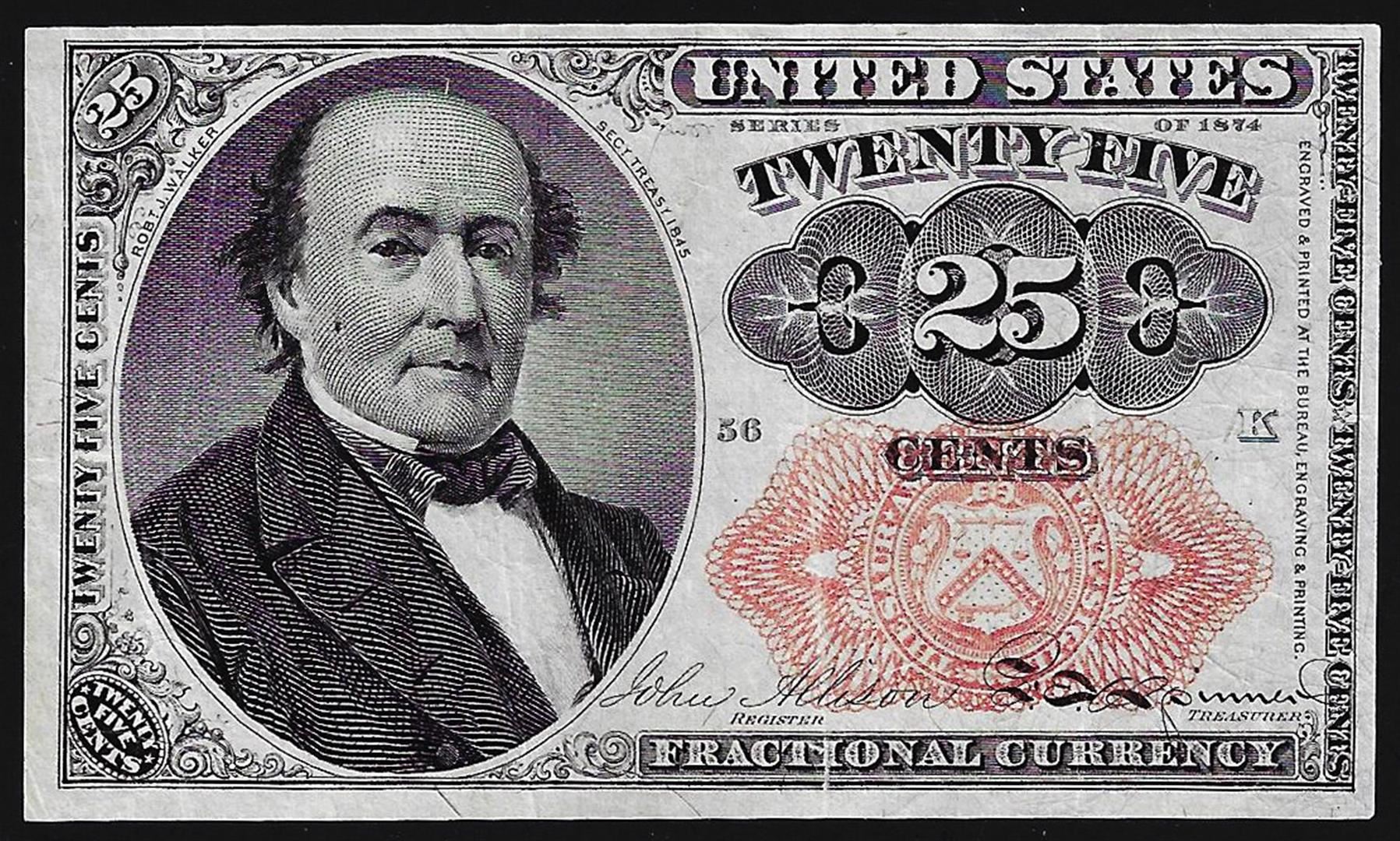 One 1874 Twenty Five Cents Fifth Issue Fractional Currency Note.
