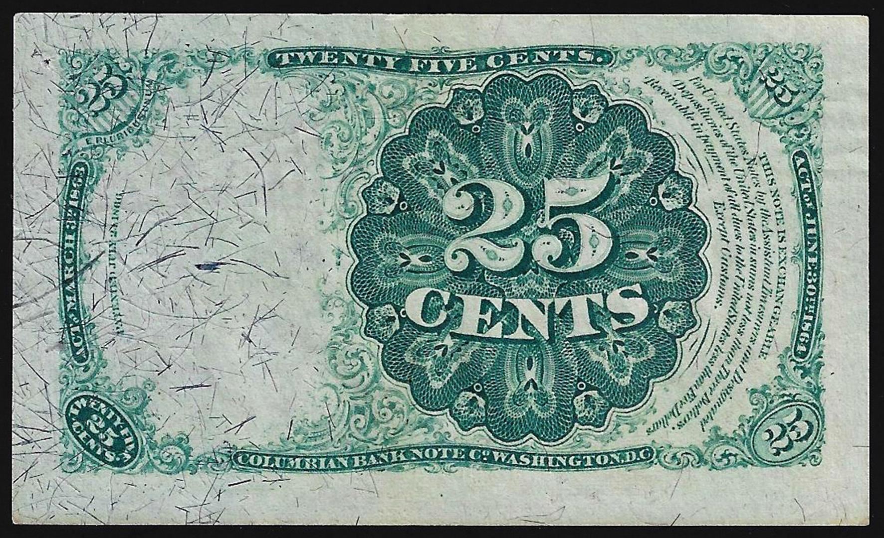 One 1874 Twenty Five Cents Fifth Issue Fractional Currency Note.