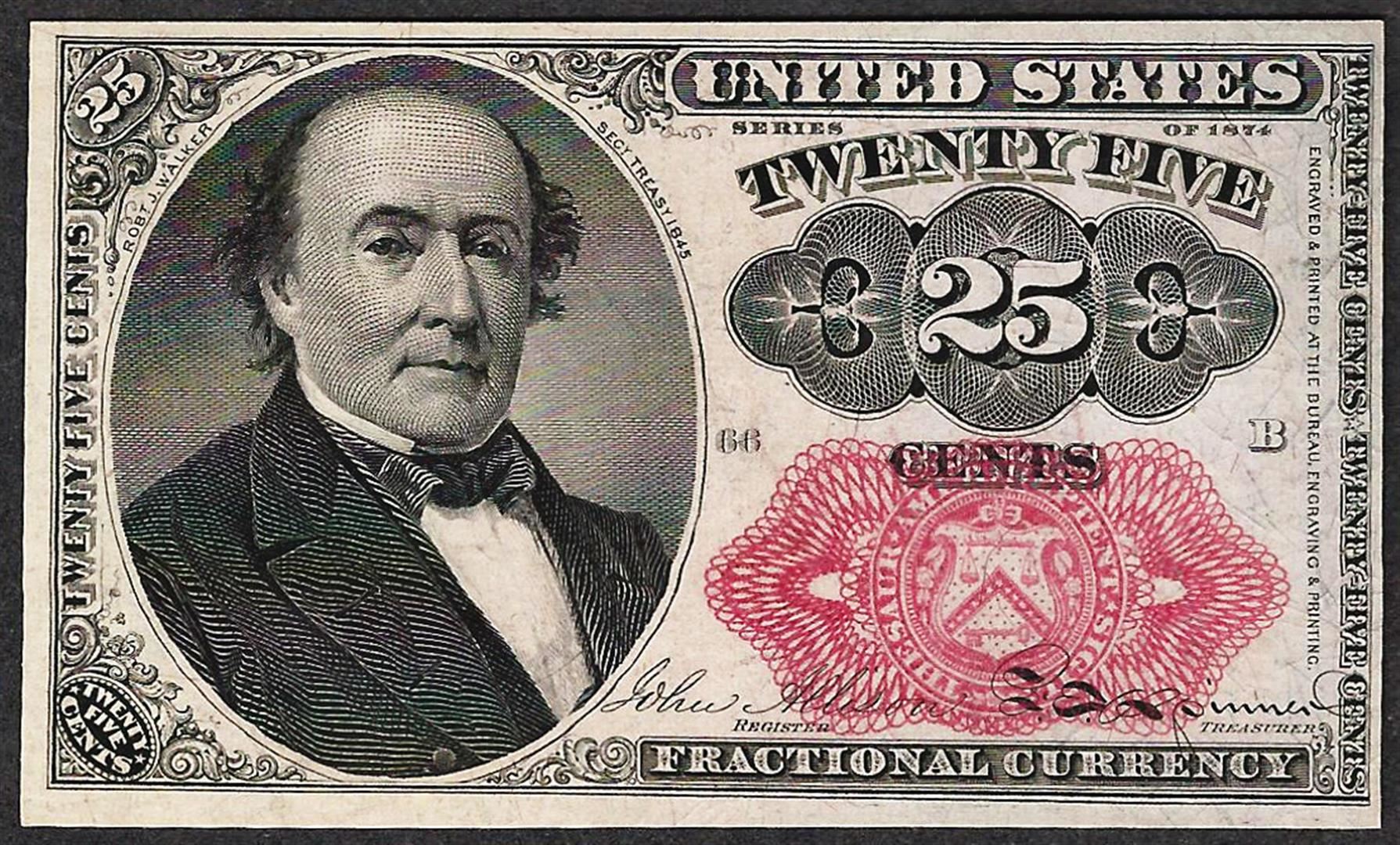 One 1874 Twenty Five Cents Fifth Issue Fractional Currency Note.
