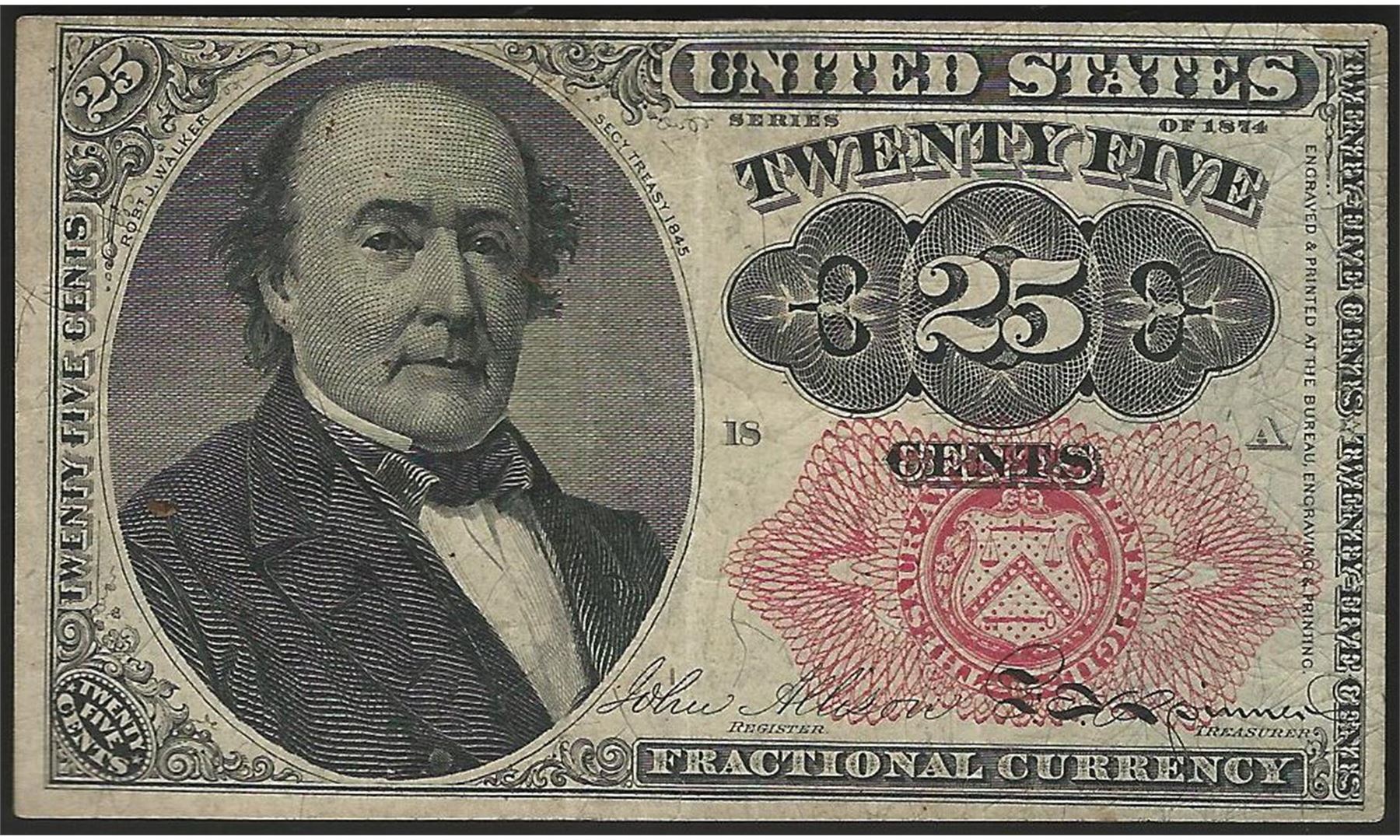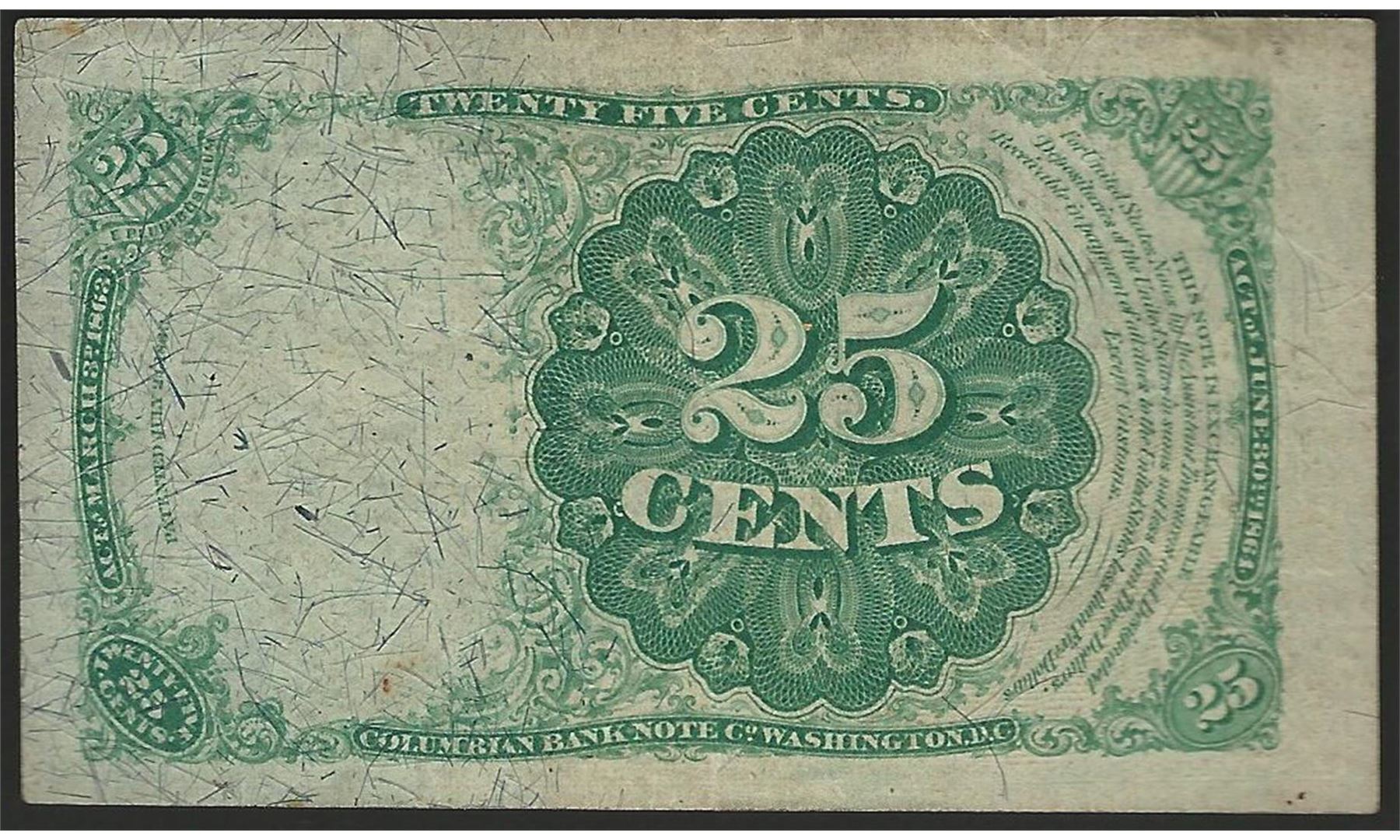 One 1874 Twenty-Five Cents Fifth Issue Fractional Note.