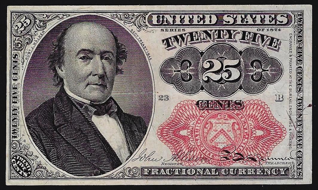 One 1874 Twenty-Five Cents Fifth Issue Fractional Note.