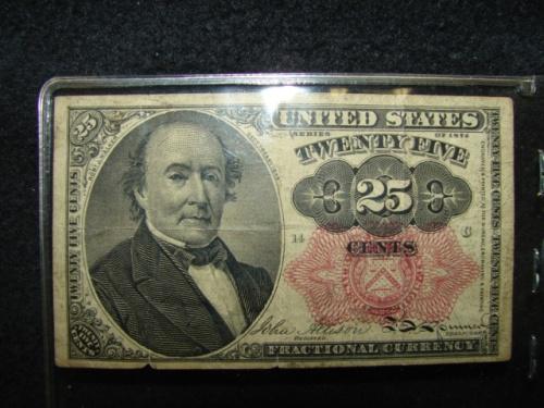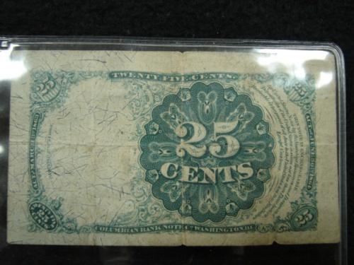 1874 U.S. 25¢ FRACTIONAL CURRENCY NOTE.