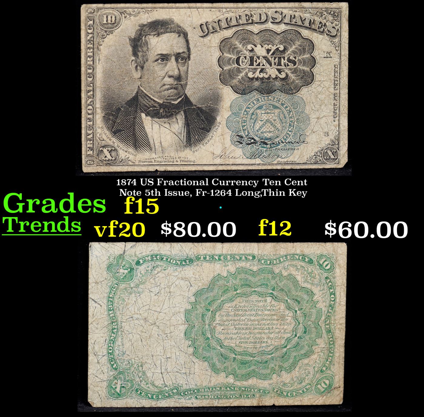 1874 US Fractional Currency Ten Cent Note 5th Issue, Fr-1264 Long,Thin Key Grades f+