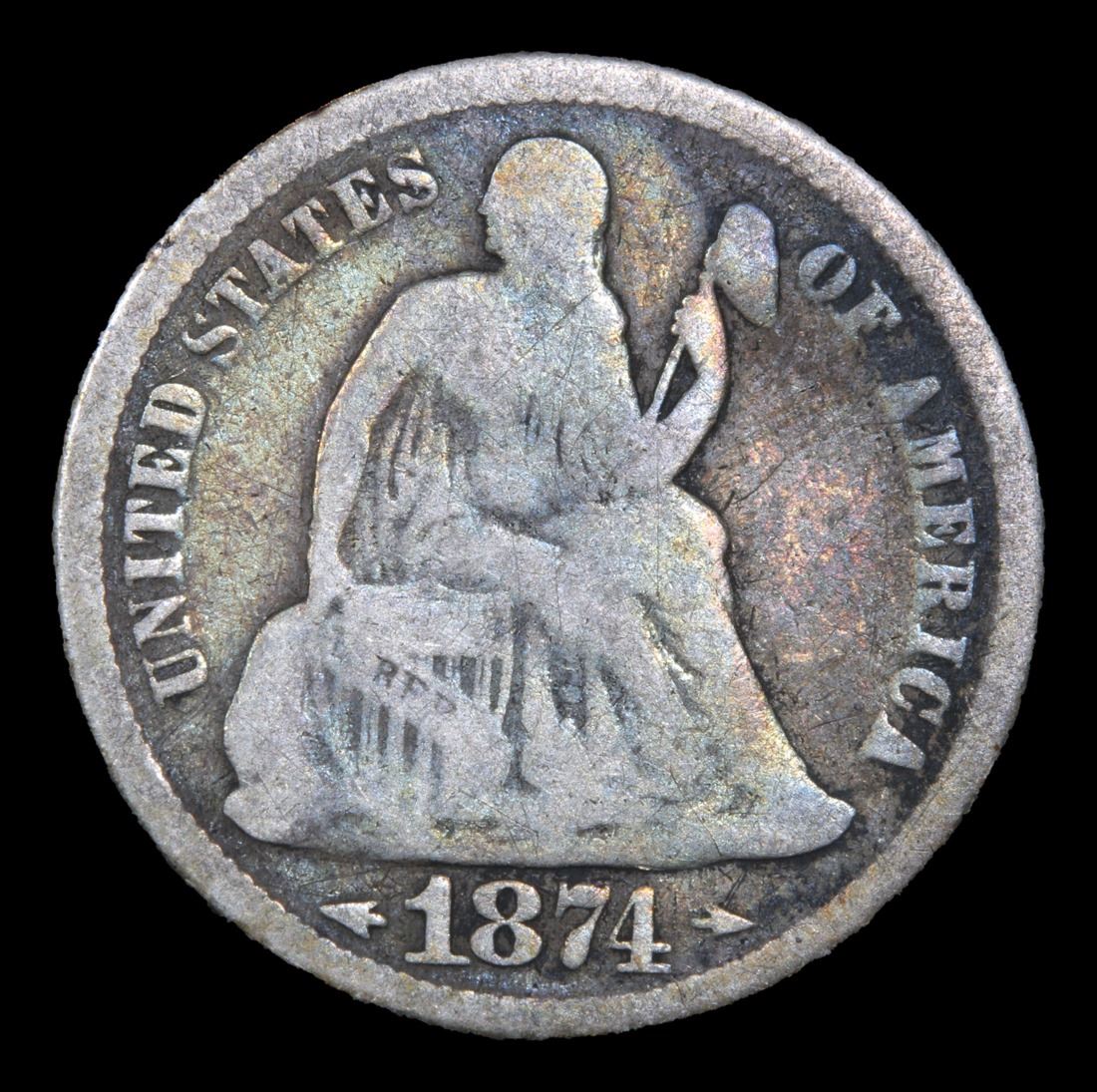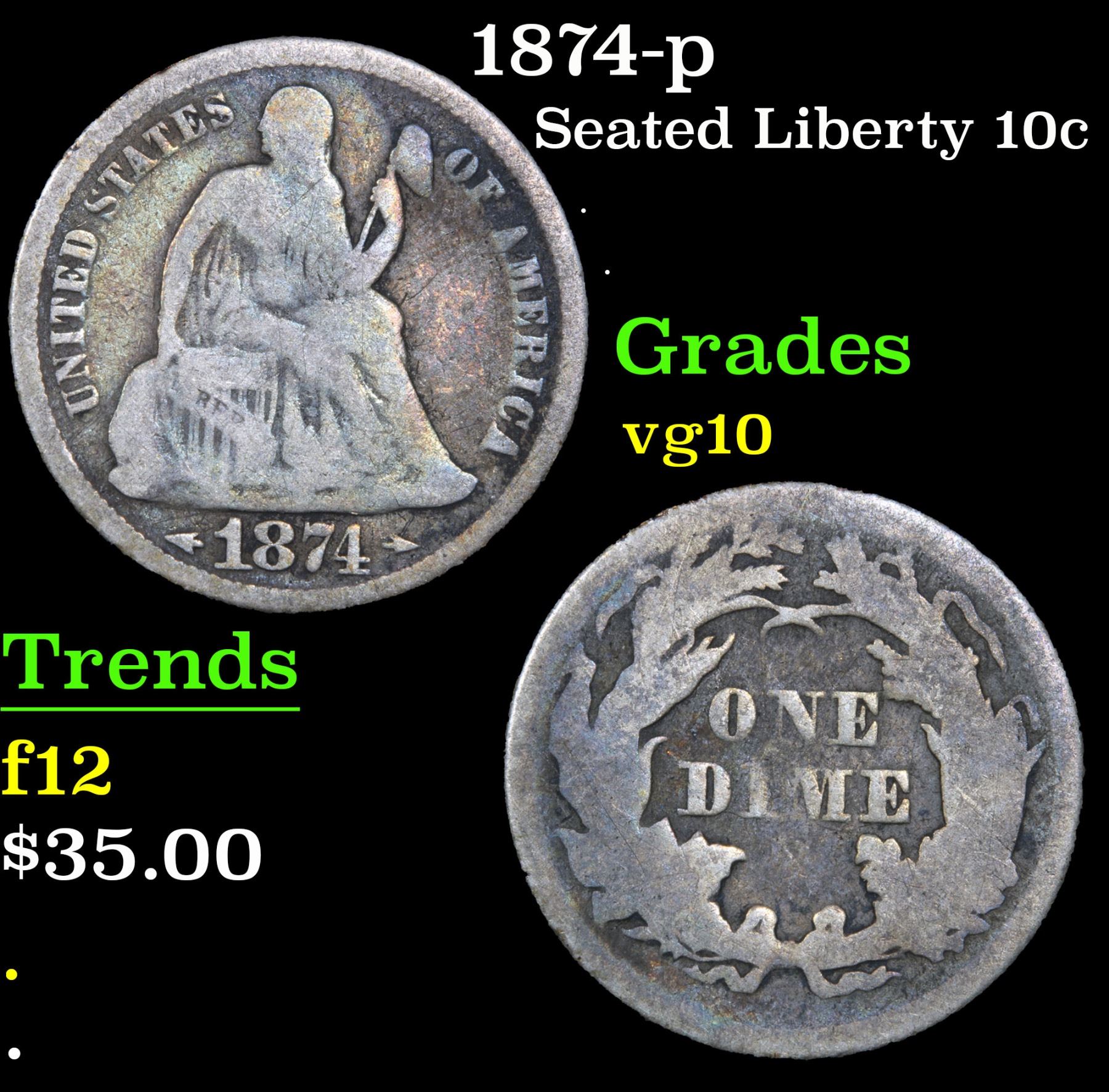 1874-p . . Seated Liberty Dime 10c Grades vg+.