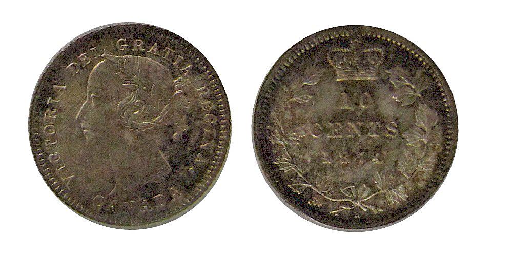 1874H 10¢ ICCS MS64PQ+. Fully struck with incredible toning. Excellent strike with clean fields and nice surfaces. Full underlying luster. A near "Gem" example. Rarely seen better.