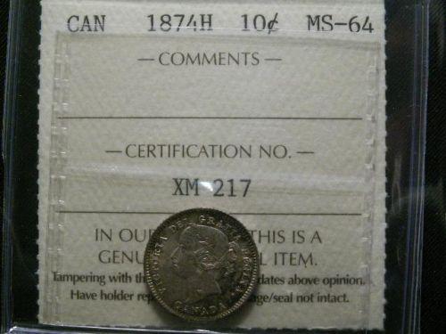 1874H 10¢ ICCS MS64PQ+. Fully struck with incredible toning. Full underlying luster. A near "Gem" example. Rarely seen better.