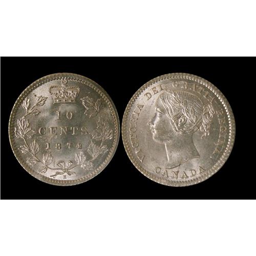 1874H 10¢ ICCS MS65. Fully struck with full luster. A true "Gem". Rarely seen better.
