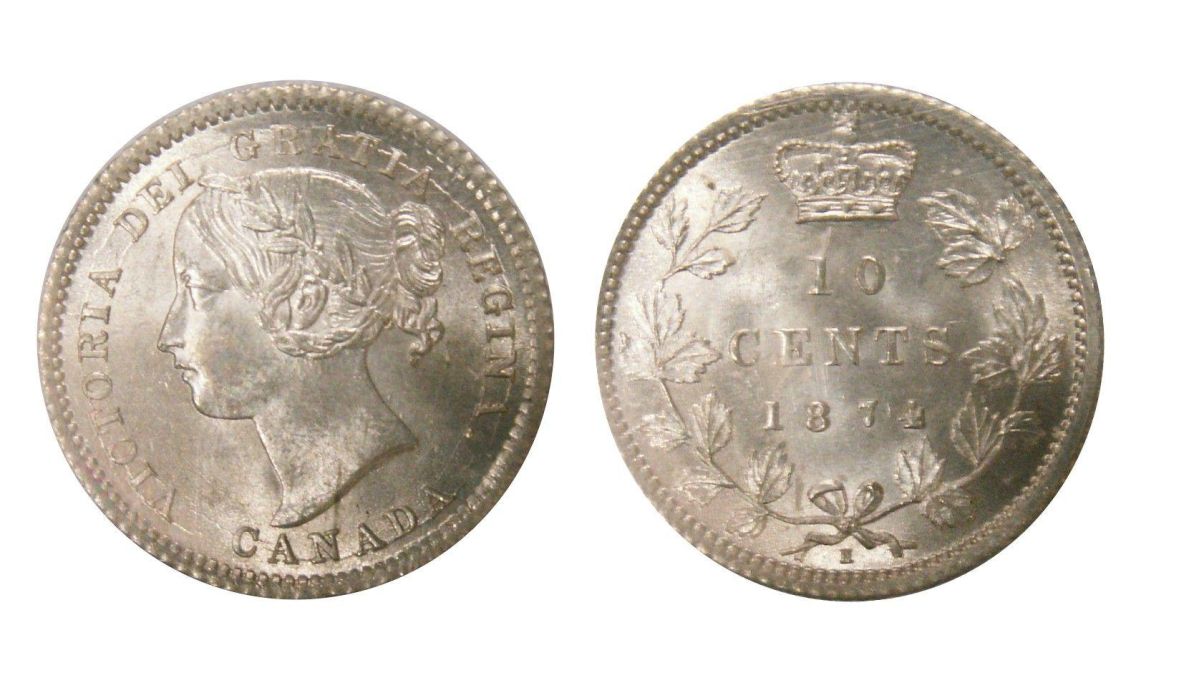 1874H 10¢ ICCS MS65. ICCS Top 5 issue w/none graded higher. Blast white and sharp eye appeal.