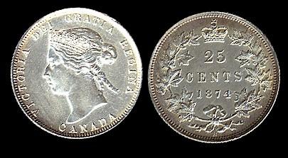 1874H 25¢. A sharp EF45 example.