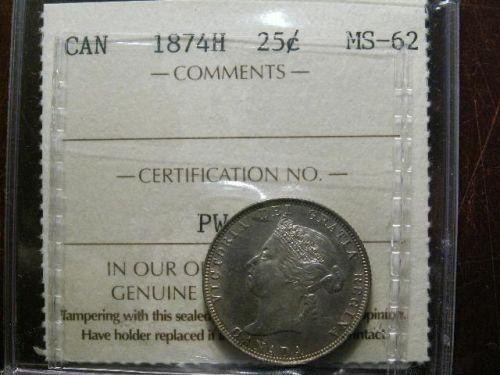 1874H 25¢ ICCS MS62. Light attractive toning over good underlying lustre.