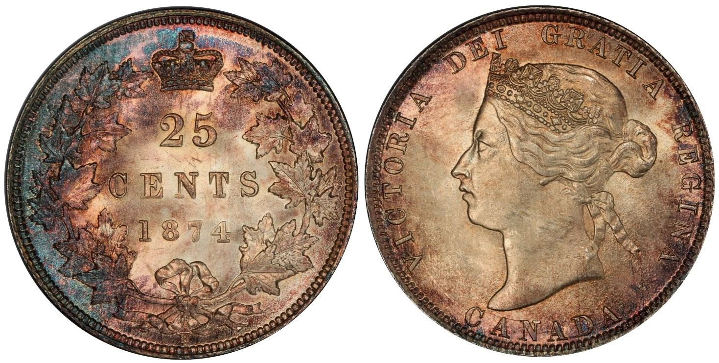 1874H 25¢ PCGS Choice Mint State-63+.  A superior example, very attractive example.
